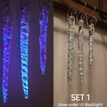 SET 1: Sparkly Blue UV Glow Icicles, 3 x Icicles that Glow under Blacklight (UV reactive) $55